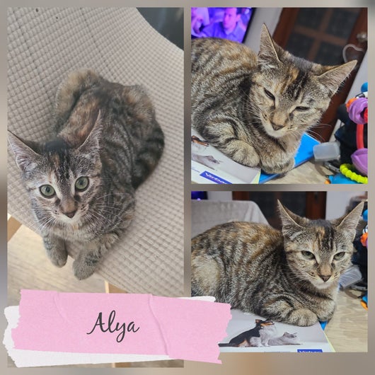 ALYA est un chaton de 3 mois et demi trouvée par une dame sur sa terrasse et qu'elle nous a confiée.